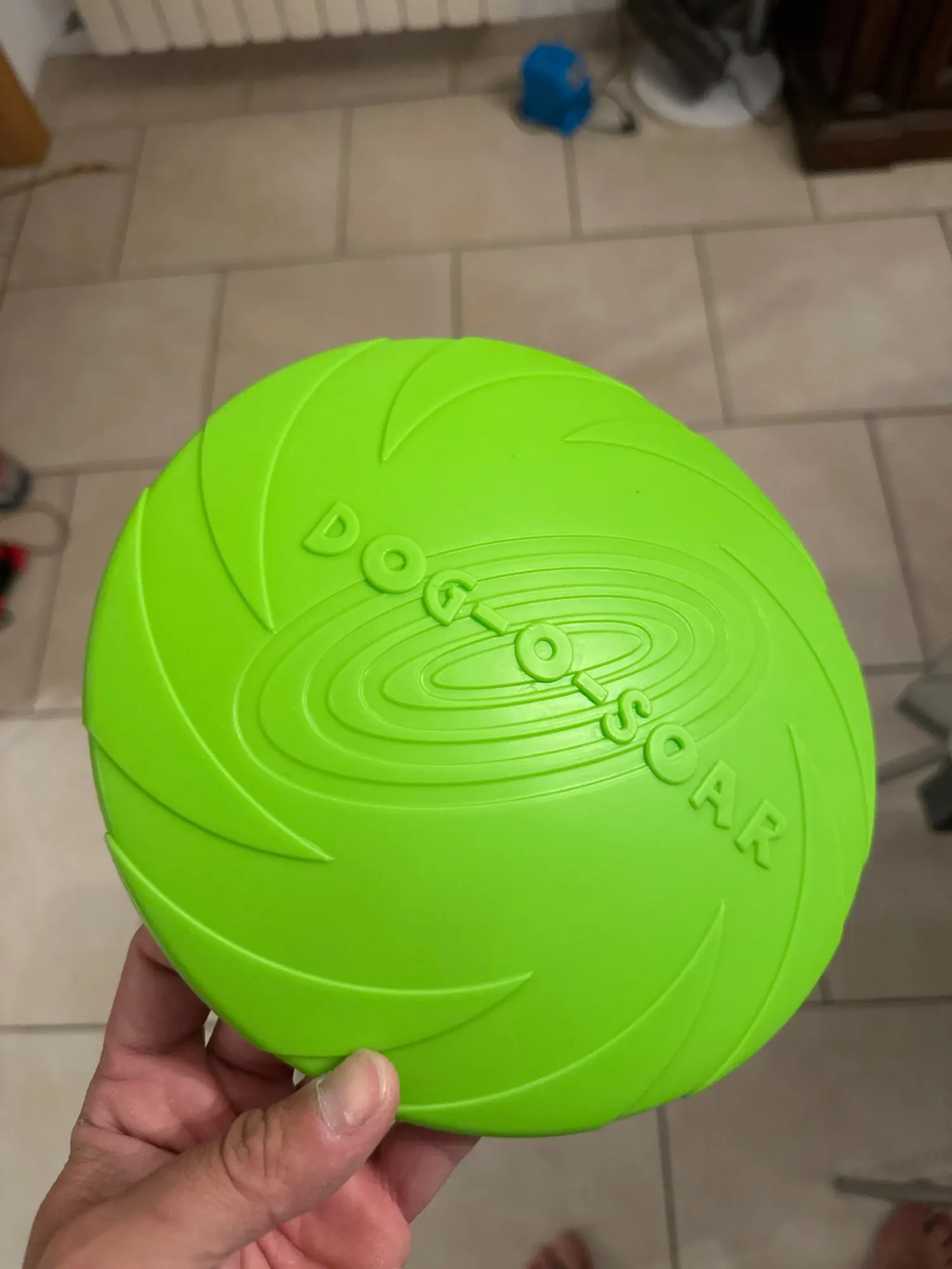 Freesbee previously purchased. It's very sturdy and I bought another one just because I'm afraid of losing it since it's my border collie's favorite toy.