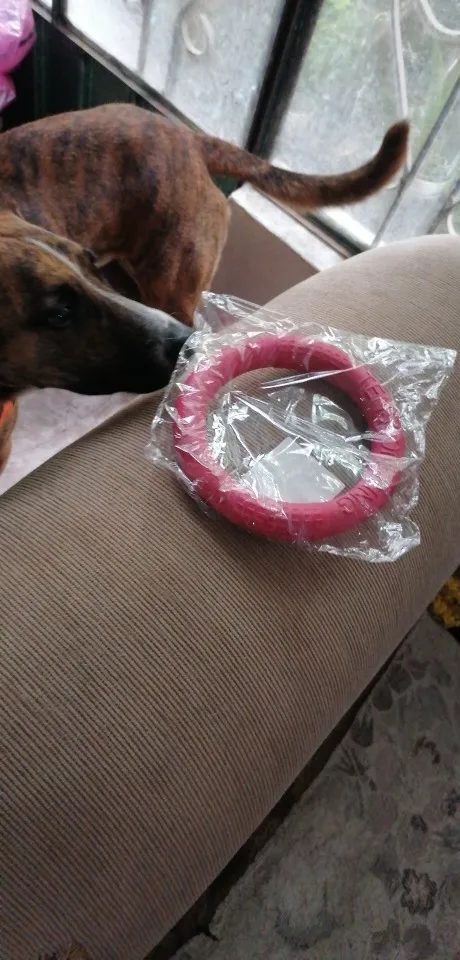 Håll din hund aktiv och underhållen med vår ringtuggleksak! Leksaken är perfekt för tugg, lek och apport, och tillverkad i slitstarkt material som tål kraftigt tuggande. Den runda formen gör den lätt att greppa och kasta, vilket ger timmar av rolig interaktiv lek för både dig och din hund.