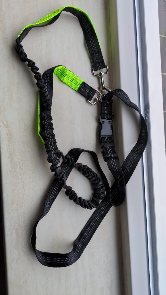 Detta justerbara handsfree-hundkoppel har ett bekvämt midjebälte (70–120 cm) och ett elastiskt koppel (125–180 cm) som ger din hund frihet att utforska samtidigt som du behåller full kontroll.